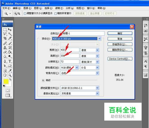 打开PS点击新建,建立一个400乘300像素的画布。想撤销选区可点击选择 里的撤销选择,或编辑里的后退一步。