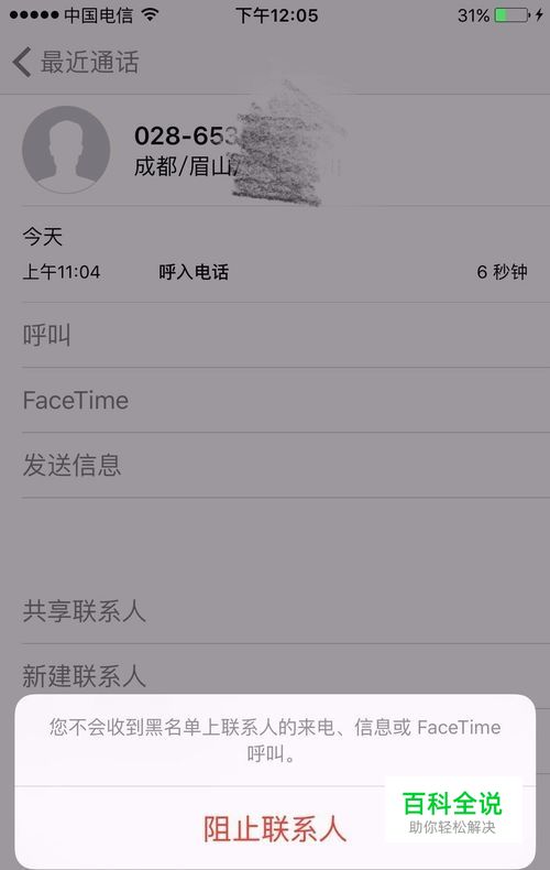 点击后,出现提示框,点击阻止联系人。