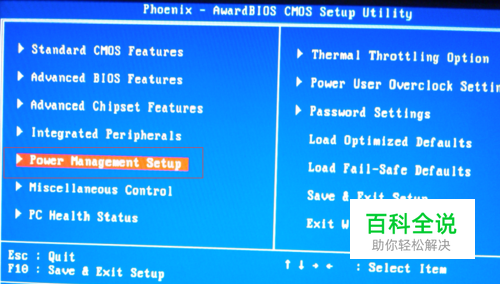 选择Power Management Setup并按Enter键。