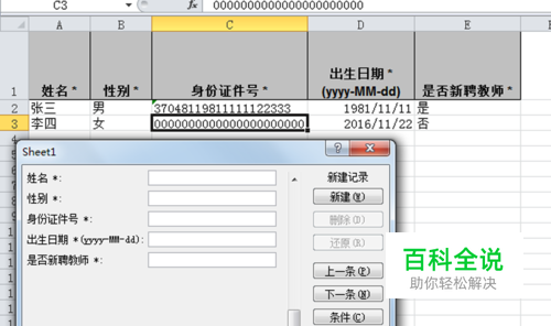 在该记录单中,按照字段名称输入相应的数据内容,输入完成后点击新建按钮。