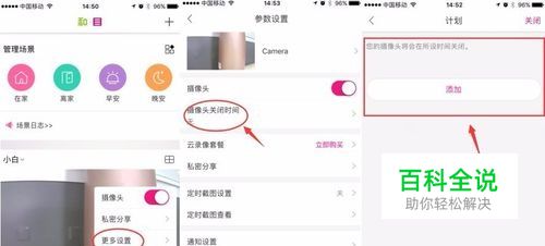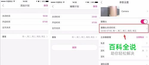 第三步,进入计划里,点击“添加”,在添加计划里进行关闭时间,开启时间,重复日期等进行设置。重复日期选中它,即代表选了,设置好后保存即摄像机定时上下线设置成功啦