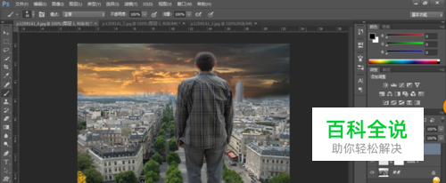 这是我的三幅素材图,分别是城市、眺望的人、云,我们要将这三幅图合成一副内容是:一站在高处眺望城市的人。
