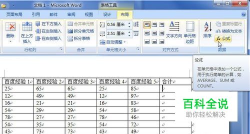 Word2007表格中的数据怎样进行计算