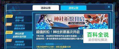 玩家可以通过公告、活动、补给、主界面展示板这四种方式进入神社祈愿界面。