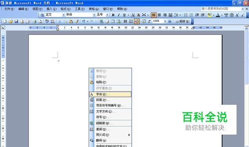 启动电脑,打开Word 2003,此时系统显示的字体正是“五号”,如图所示