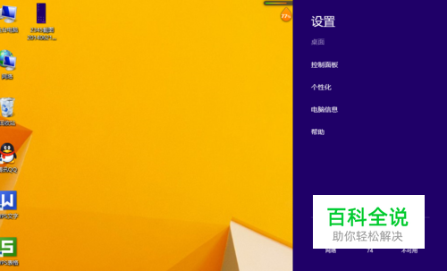在【开始】或【传统】屏幕下,将鼠标光标移动到桌面右边缘稍停一下调出Chaarm菜单,点击【设置】选项。