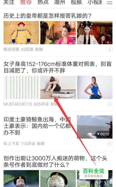 手机中打开今日头条APP后,进入到首页当中,显示推荐的新闻内容,随便点击一条新闻进入。