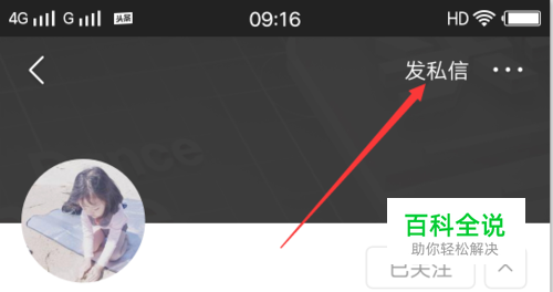 关注成功后,点击右上角的发私信字样图标,如下图所示。