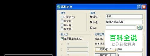 用矩形命令画一个方框,输入ATT命令插入一个属性,如图所示设置,点击确定。