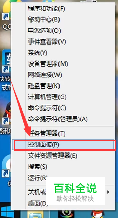 鼠标右击电脑左下角的window图标,在弹出的命令窗口选择【控制面板】
