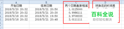 两个日期直接相减,得到的是一个带小数点的天数,不够直观。当把小数部分转换为小时数,和分钟数后,就会直观多了。