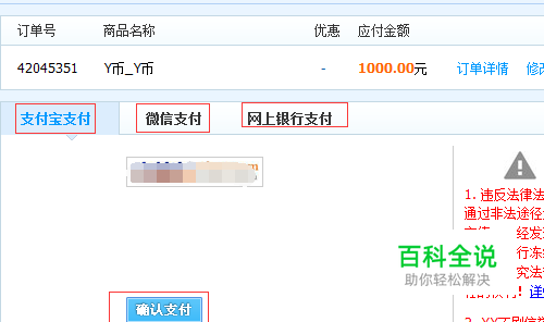 点击“立即充值”之后就跳转到了支付页面,一共有三种支付方式可以选择。