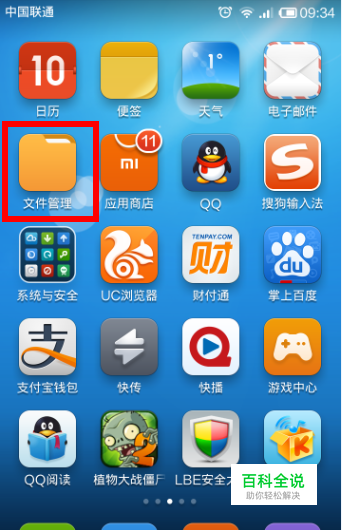 首先确认电脑和小米手机都连接上了同一个无线网。然后打开手机界面,点击【文件管理】这一功能。