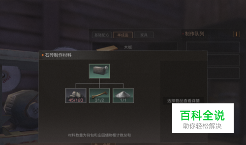 根据游戏的设定玩家制作石砖需要用到石头×120、骨头×2以及石灰×1,如下图所示。