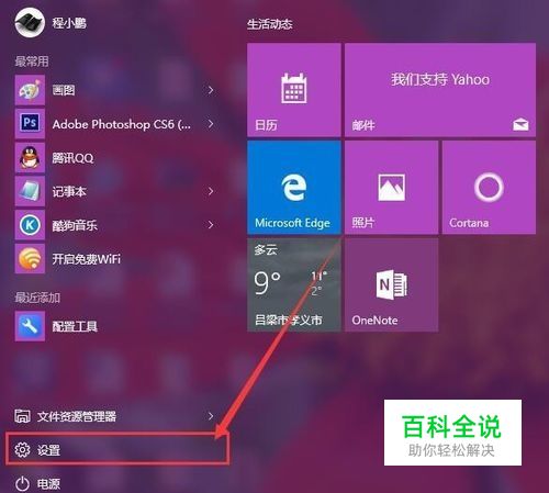 首先,请大家在Win10系统桌面上按下Windows徽标键,在接下来打开的开始菜单中,点击选择“ 设置”应用,进入Win10系统设置页面。