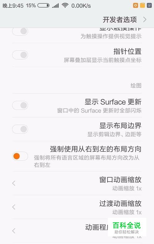 然后打开其他高级设置或者更多选项,点击开发者选项,找到设置项「强制使用从右到左的布局方向」,打开它。