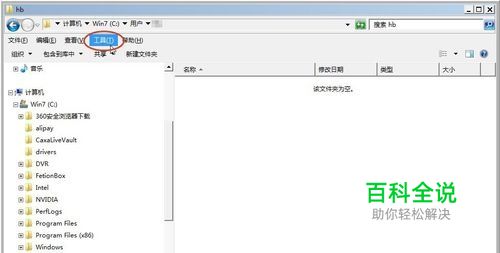 打开【资源管理器】; 单击“ 工具”; 如图: