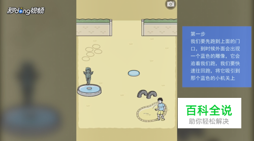 我们要快速往回跑,将它吸引到那个蓝色的小机关上。