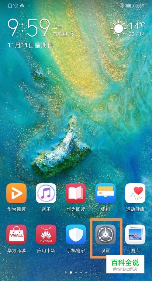 在桌面上找到设置,并打开。