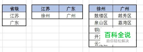 选择第一个省级对应的单元格,使用一级下拉菜单设定方式设定第一级下拉菜单。不知道如何设置一级下拉菜单可以看一下我之前的经验分享。