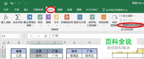 先选中二级下拉菜单内容,然后点击【公式】>【根据所选内容创建】