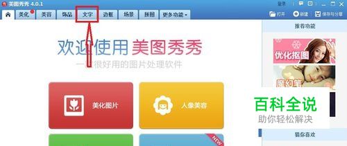 打开美图秀秀,点击“文字”。