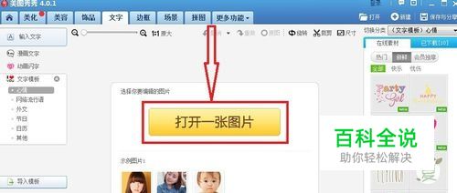 进入文字功能界面,点击“打开一张图片”,从电脑上选择你要处理的图片。
