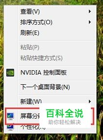 接好显示器后,打开电脑,在桌面空白空处“右击”->“屏幕分辨率”