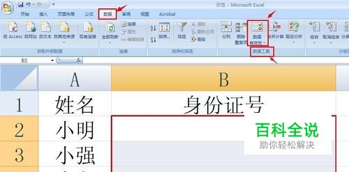 框选要输入身份证号的单元格,切换到“数据”标签,在“数据工具”栏,点击“数据有效性”工具。