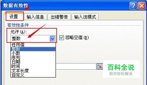 弹出对话框,切换到“设置”标签,在“允许”下面选择“整数”。身份证号当然是整数了。