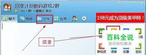 首先打开QQ群,在其上方或者右侧工具栏处找到文件选项卡。