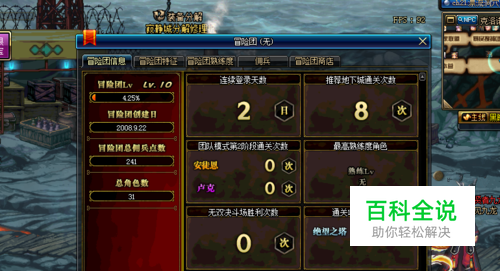 之后我们即可看到冒险团的界面,我们点击上方的冒险团信息,在这里可以看到冒险团的等级,如图所示。