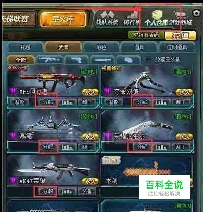 生死狙击分解武器需要条件的,有的武器是不能分解的