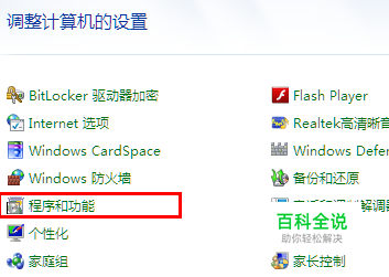 打开控制面板中的程序和功能选项