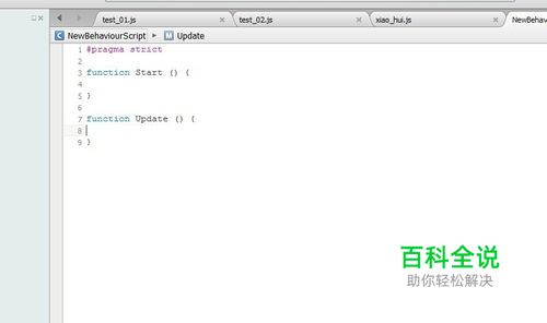 打开unity3D软件,点击create创建一个新的javascript的脚本,初始内容如图所示
