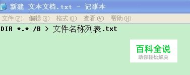 打开新件的文本文档,并输入DIR *.* /B > 文件名称列表.txt 保存后关闭。