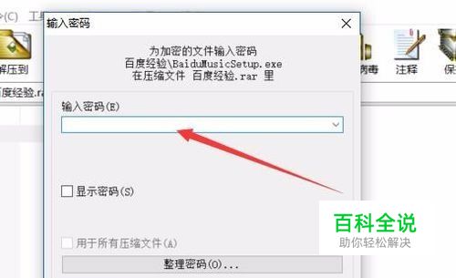 这时会打开输入密码窗口,输入要加密的密码,最后点击确定按钮 ,这样我们就可以生成一个加密的压缩文件了。同时把原来的文件删除。
