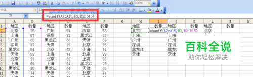 可以把数据区域扩大试试,输入公式=SUMIF(A2:E15,N12,B2:F15)。注意:选的区域。