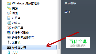 首先我们点击电脑桌面左下角的“开始菜单”按钮,在里面点击“所有程序”,里面有一个“附件”,我们点开即可看到命令提示符,我们将命令提示符打开,如图所示。