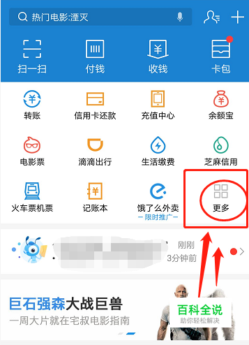 一开始,我们点击手机上面的支付宝,打开后,点击所指的地方。