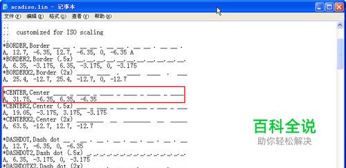 这些线由一些重复的单元构成,为了更容易表现这些线型,CAD定义一种文件:线型文件(*.lin)。有了线型文件,我们就不需要去绘制和阵列线型单元了,只需绘制正常的直线、圆、弧等图形,然后从线型文件中加载并选择合适的线型就可以了。 线型文件一个纯文本文件,用记事本就可以打开。