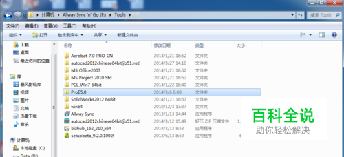 首先必须要先下载ProE5.0软件包啦!先保存到电脑的某一盘,如E盘或F盘,如下图,我就保存在F盘下的一个文件内, 通常软件包不建议放在C盘或D盘,C盘为系统盘,大软件装在C盘会使系统运行变慢,通常安装在D盘。