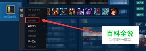 点击英雄联盟旁边的小三角,会出现菜单,点击游戏修复