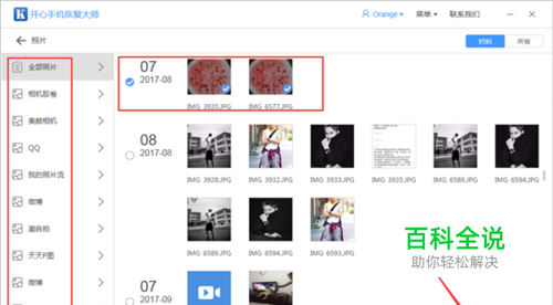 进入恢复的界面,可以看到已经删除的各种照片了,勾选要恢复的照片,选择“恢复到电脑”即可。