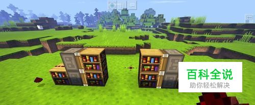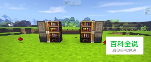 首先我们放两个粘性活塞,在粘性活塞的前面放两个书架,另外一边也一样,中间隔开两格。