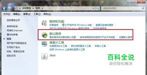 第二步进去程序界面之后,选择“默认程序”,如下图所示: