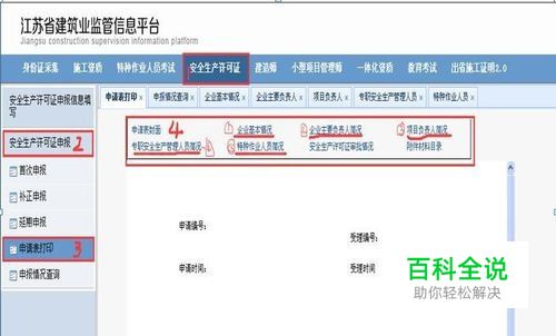 第一步:了解需要填写哪些资料 点击 安全生产许可证—安全生产许可证申报—申请表打印—下图第四步中企业基本情况,企业主要负责人,项目负责人,专职安全生产管理人员,特种作业人员为需要填写更新的内容。以上五项内容每个职务不能空白。