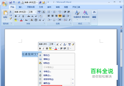 方法一:选中文字,右击鼠标,选择“文字方向”(如图);