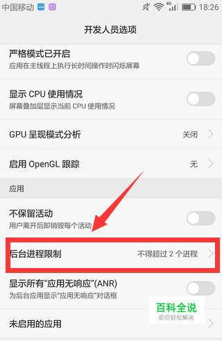向下翻动找到后台进程限制,