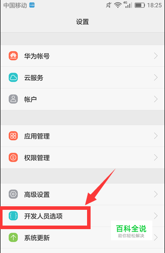 打开手机设置,找到开发人员选项设置,